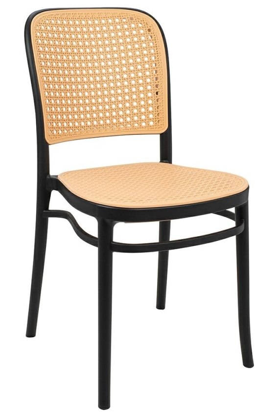 CZARNE KRZESŁO TERNI DO JADALNI, PLASTIKOWE, AŻUROWE, KLASYCZNE, NA BALKON