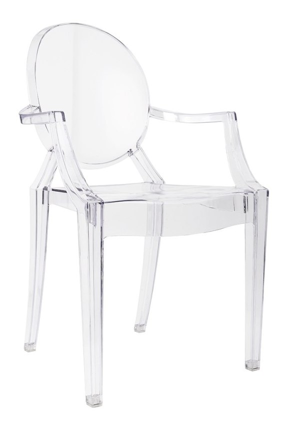 Krzesło Vincent zostało w całości wykonane z przezroczystego poliwęglanu – materiału niezwykle wytrzymałego, odpornego na uderzenia i uszkodzenia mechaniczne.