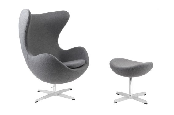 Fotel EGG - Jajo, z podnóżkiem kaszmir 42 szary jasny Premium