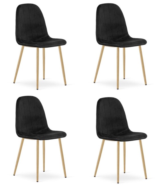 Krzesło PADVA - aksamit czarny / nogi dąb x 4