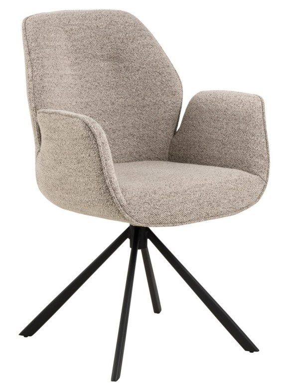 Krzesło obrotowe z podłokietnikami Aura posiada charakterystyczną sylwetkę i cechuje się nowoczesną elegancją. To krzesło do jadalni jest idealne do każdego nowoczesnego domu. Siedzisko tapicerowane jest beżową tkaniną Monza o eleganckim wyglądzie. Aby jeszcze bardziej podkreślić nowoczesny wygląd przy projektowaniu wykorzystano czarną metalową podstawę w kształcie 4 ramiennej gwiazdy. Co ważne podstawa ma funkcję obrotową. Główne cechy Nowoczesne krzesło do jadalni z odrobiną elegancji Tapicerowane beżową tkaniną z efektem dwóch odcieni Czarna, malowana proszkowo metalowa podstawa z funkcją obrotu Wyraziste detale z lamówki Duński projekt chroniony wyłącznie dla Actona Szerokość siedziska: 45cm Głębokość siedziska: 44cm Wysokość oparcia: 45cm Ilość kartonów: 1 Wymiary kartonów: 77x61,5x65cm Waga kartonów: 10,6kg