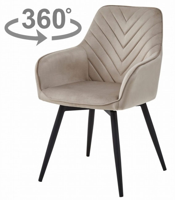 OBROTOWE KRZESŁO TAMARA BEŻOWE, TAPICEROWANE, DO JADALNI, Z PODŁOKIETNIKAMI
