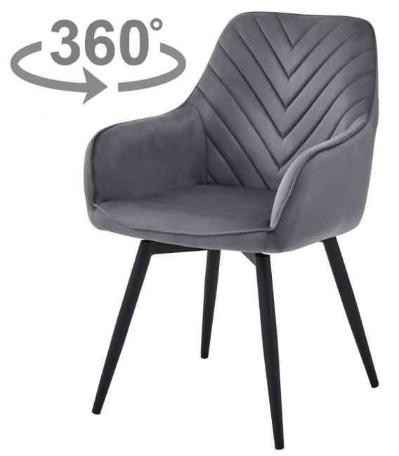 • OBROTOWE KRZESŁO TAMARA SZARE, TAPICEROWANE, DO JADALNI, Z PODŁOKIETNIKAMI