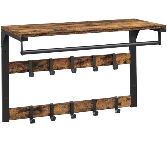 PÓŁKA WISZĄCA ŚCIENNA Z WIESZAKAMI - RUSTYKALNY BRĄZ